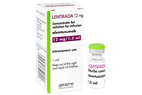 阿仑单抗(Lemtrada)是一种人源化抗CD52单克隆抗体,用于治疗复发型多发性硬化(MS)。